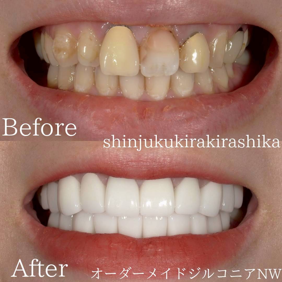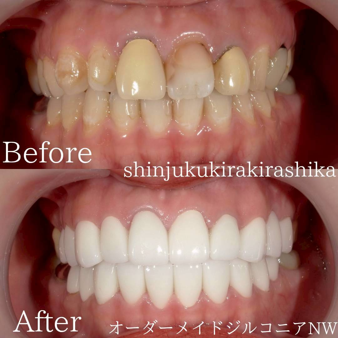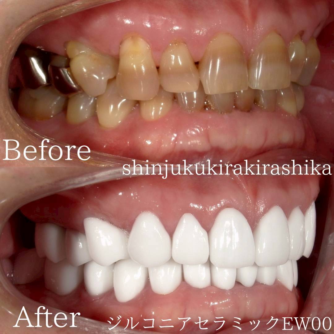 主訴 保険の被せ物の劣化、虫歯治療痕の変色、歯の黄ばみを白くしたい 施術名 セラミック治療 上部構造材質 オーダーメイドジルコニア 上部構造カラー NW 治療本数 20本 費用 1,250,000円(税込)