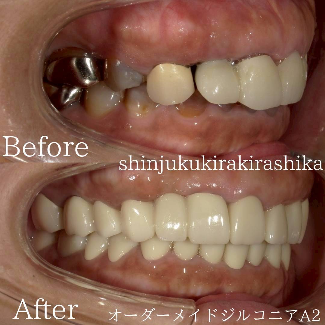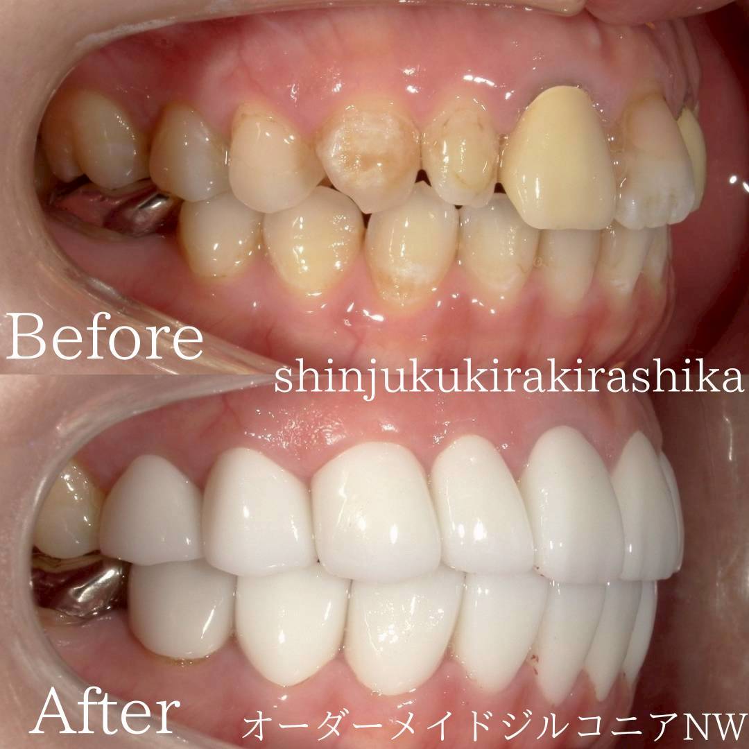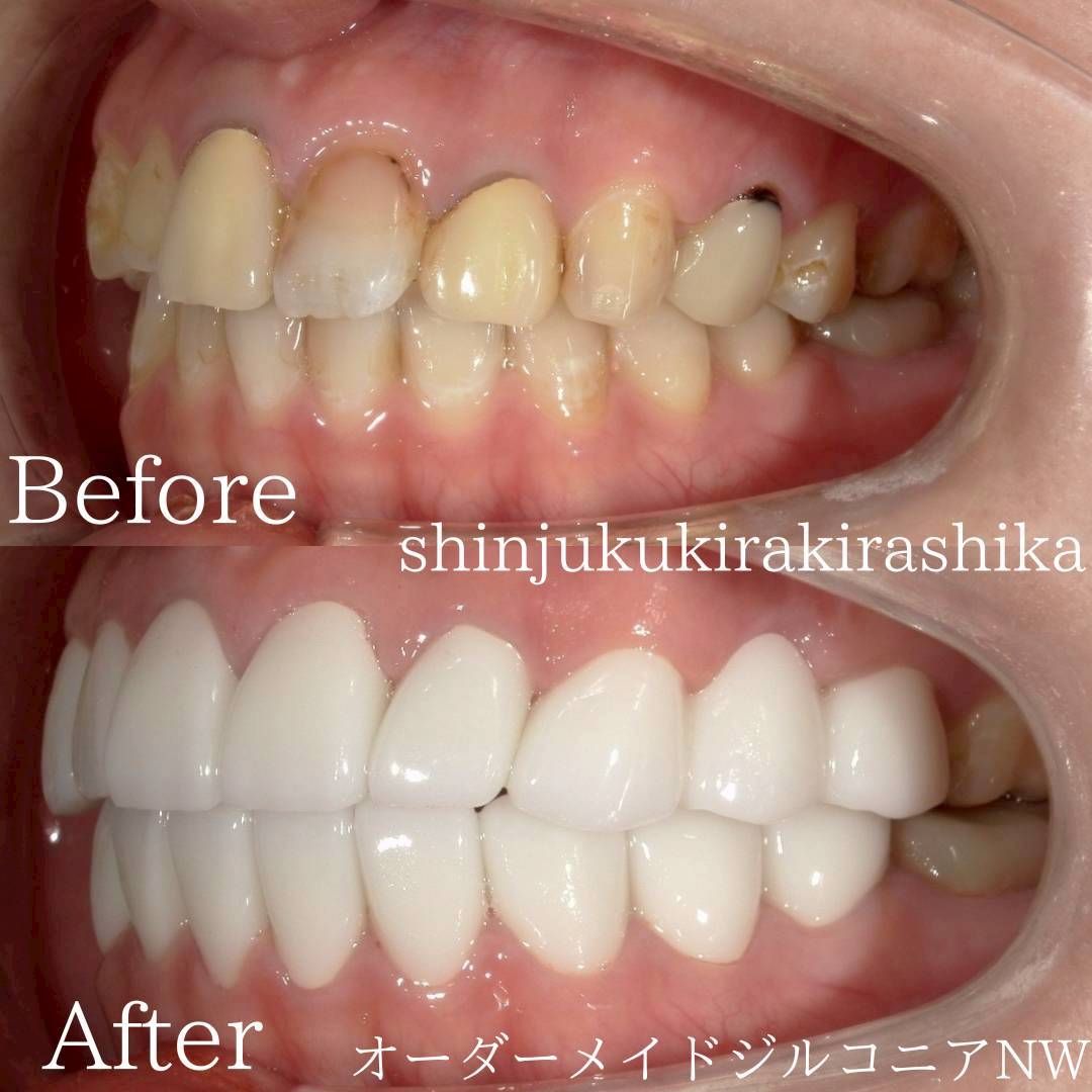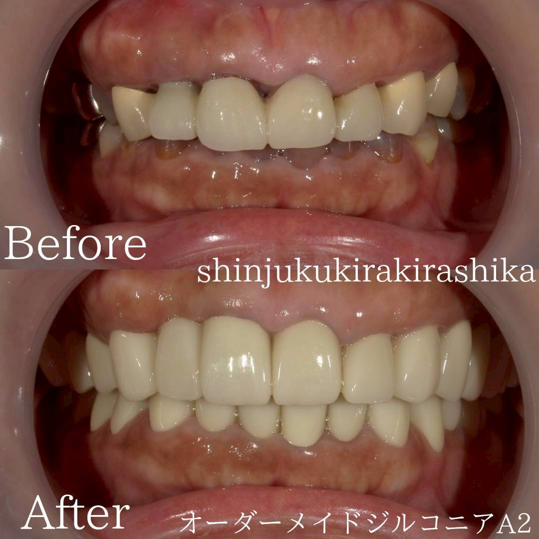 主訴 保険の被せ物の劣化、虫歯治療痕の変色、歯の黄ばみを白くしたい 施術名 セラミック治療 上部構造材質 オーダーメイドジルコニア 上部構造カラー NW 治療本数 20本 費用 1,250,000円(税込)