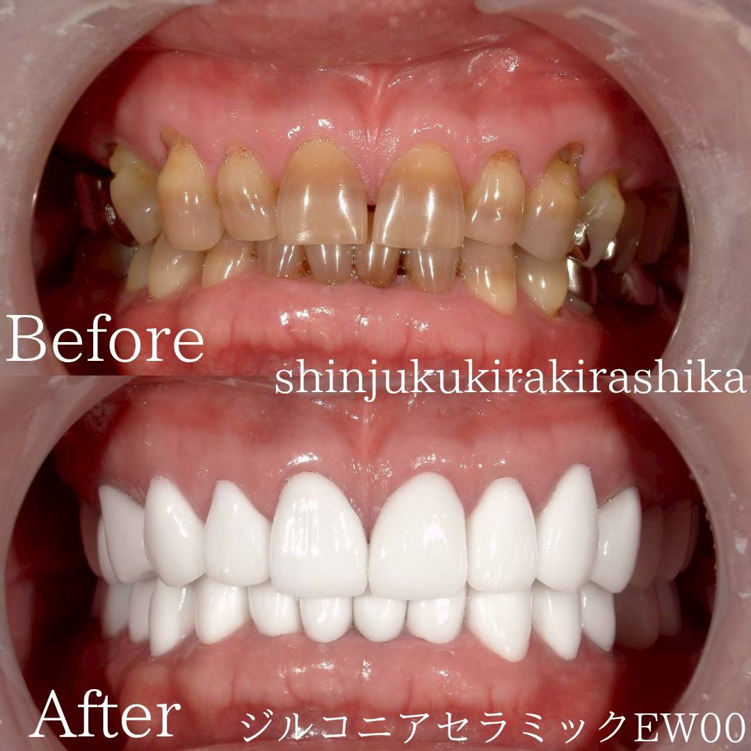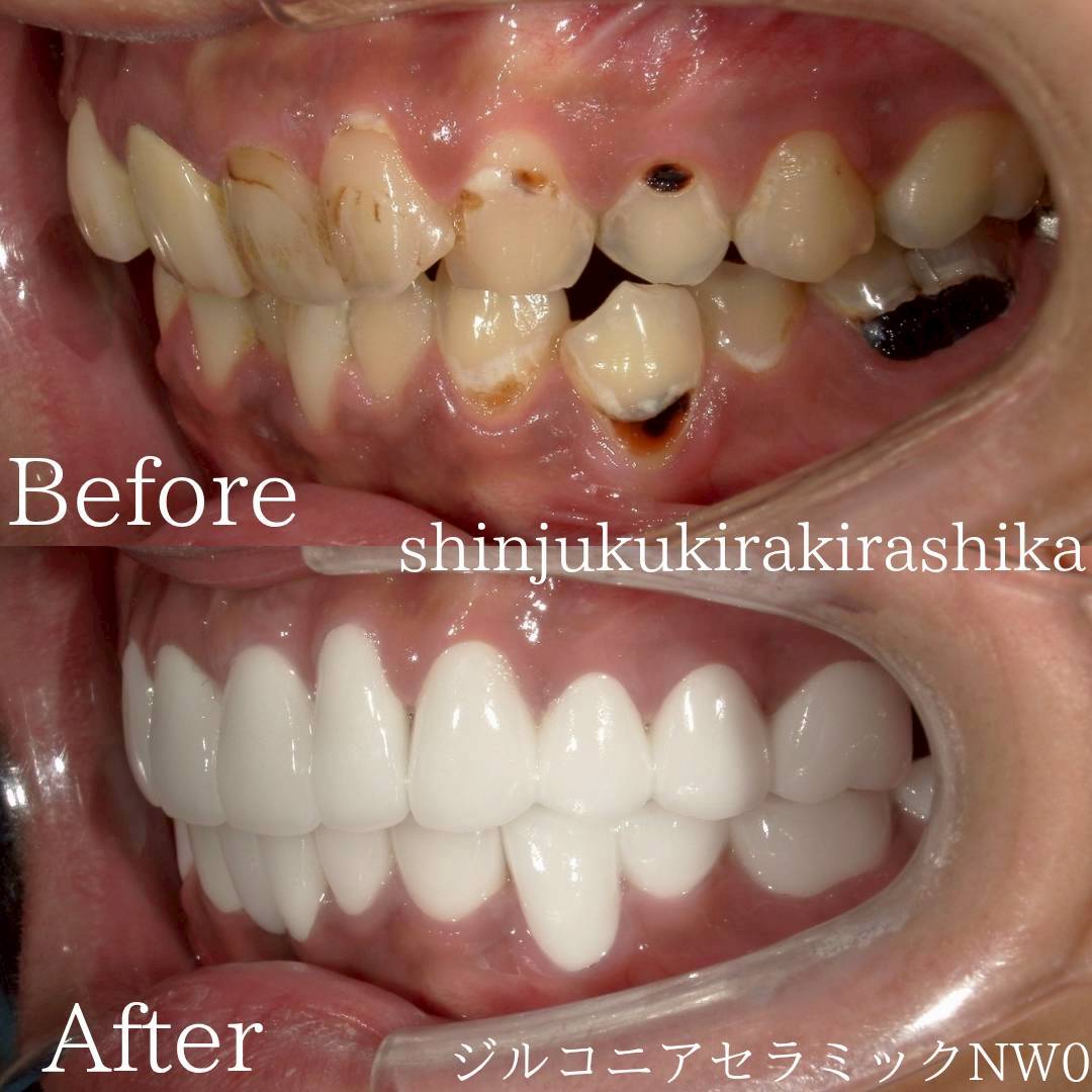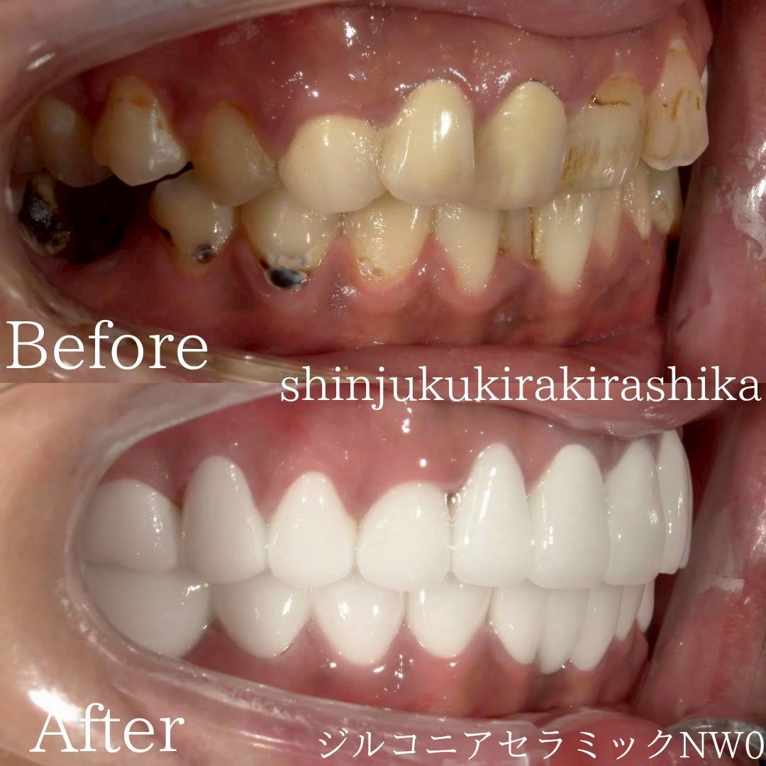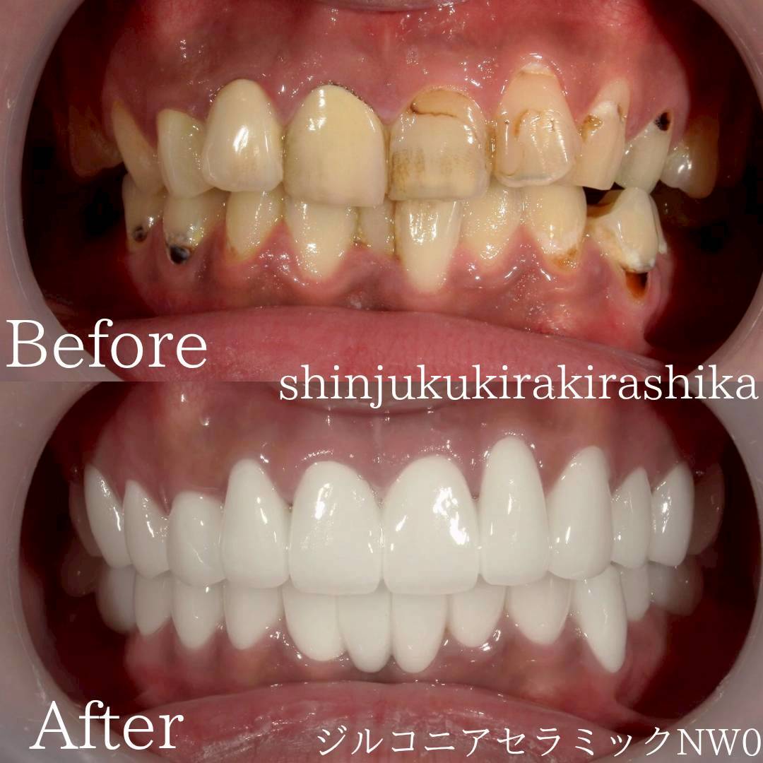 主訴 虫歯で歯がガタガタ、全部の歯を綺麗にしたい 施術名 セラミック治療 上部構造材質 ジルコニアセラミック 上部構造カラー NW0.5 治療本数 27本 費用 2,230,000円(税込)