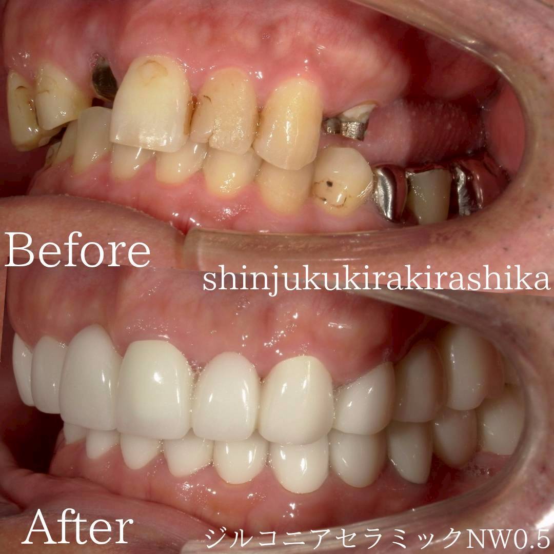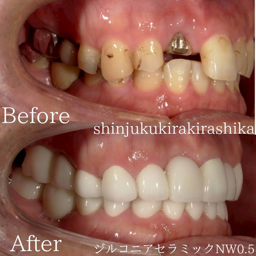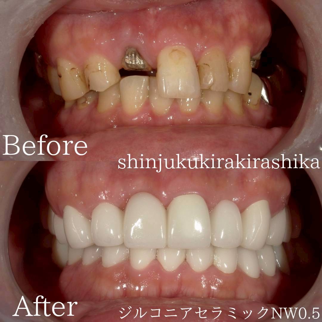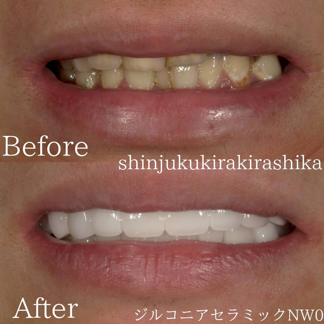 主訴 虫歯で歯がガタガタ、全部の歯を綺麗にしたい 施術名 セラミック治療 上部構造材質 ジルコニアセラミック 上部構造カラー NW0.5 治療本数 27本 費用 2,230,000円(税込)