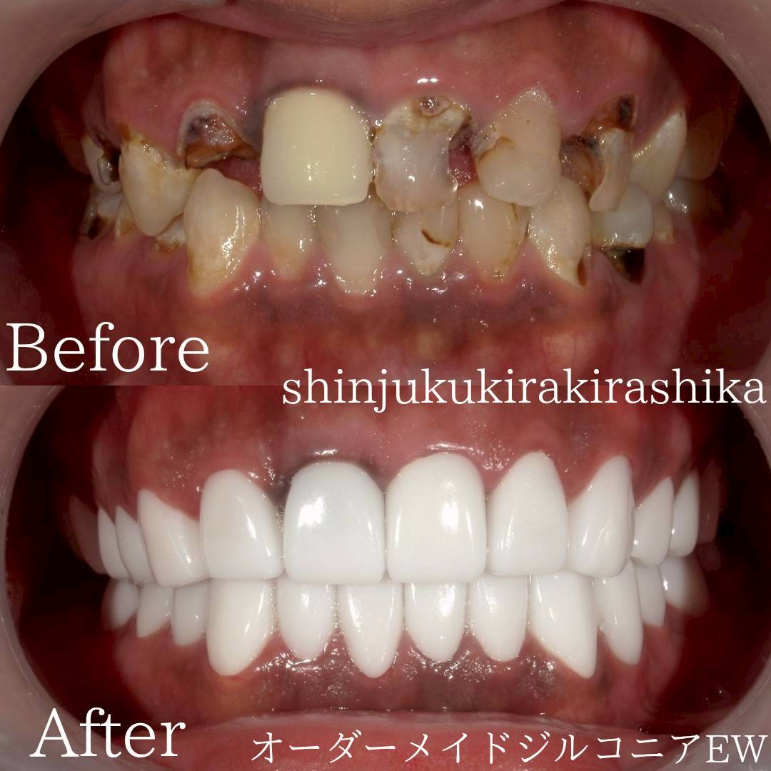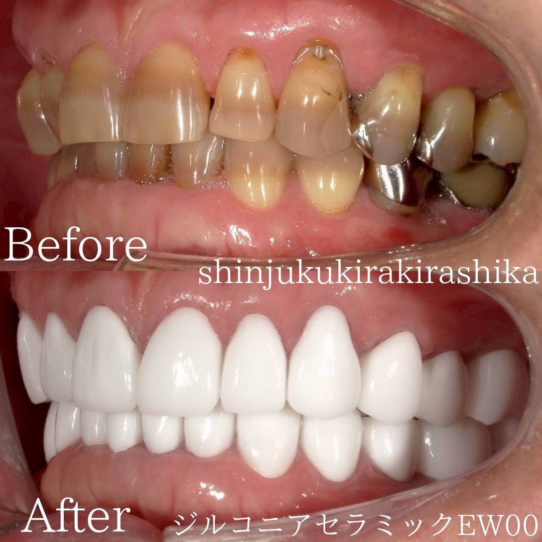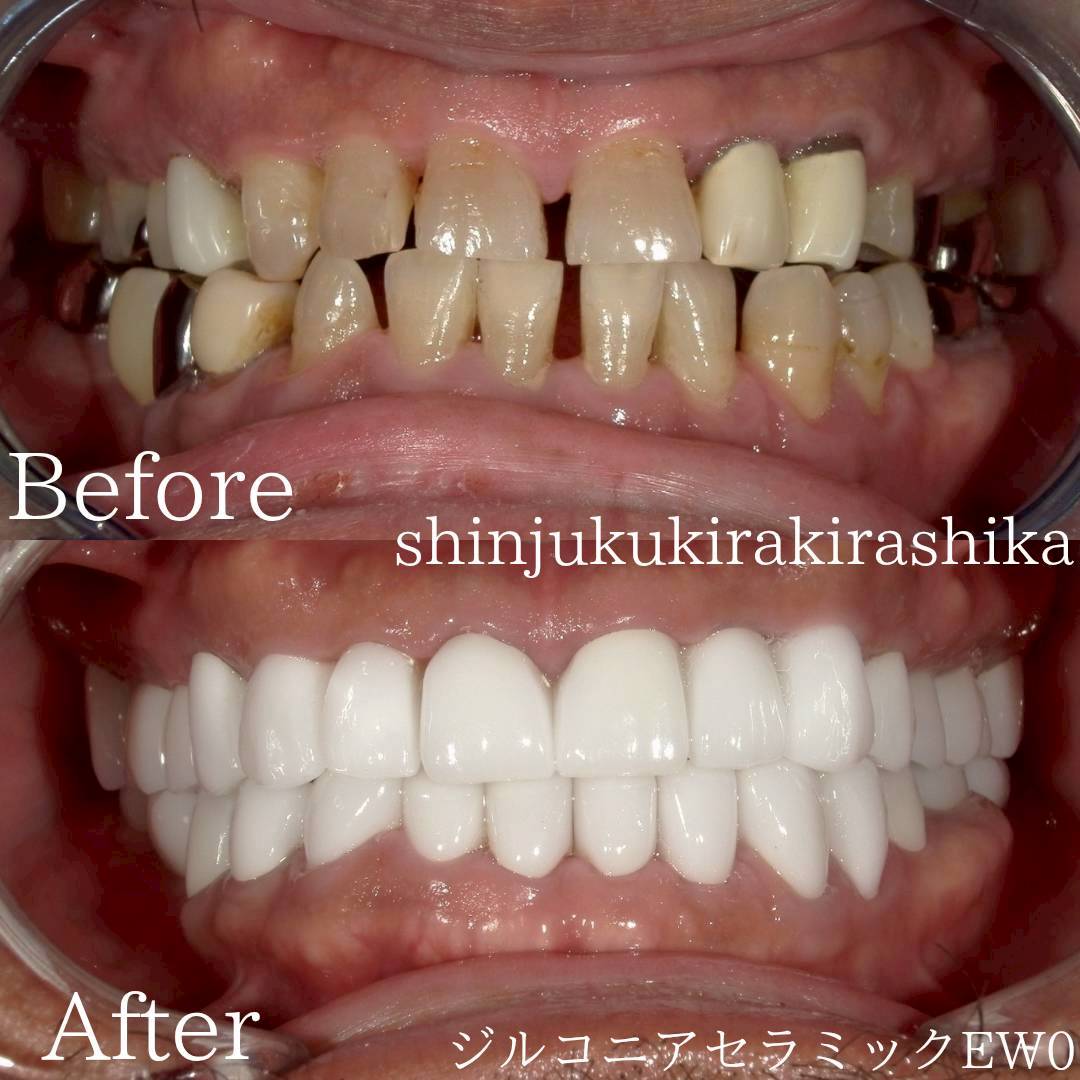 主訴 虫歯で歯がボロボロ、全部の歯を綺麗にしたい 施術名 セラミック治療 上部構造材質 オーダーメイドジルコニア 上部構造カラー EW 治療本数 27本 費用 2,230,000円(税込)