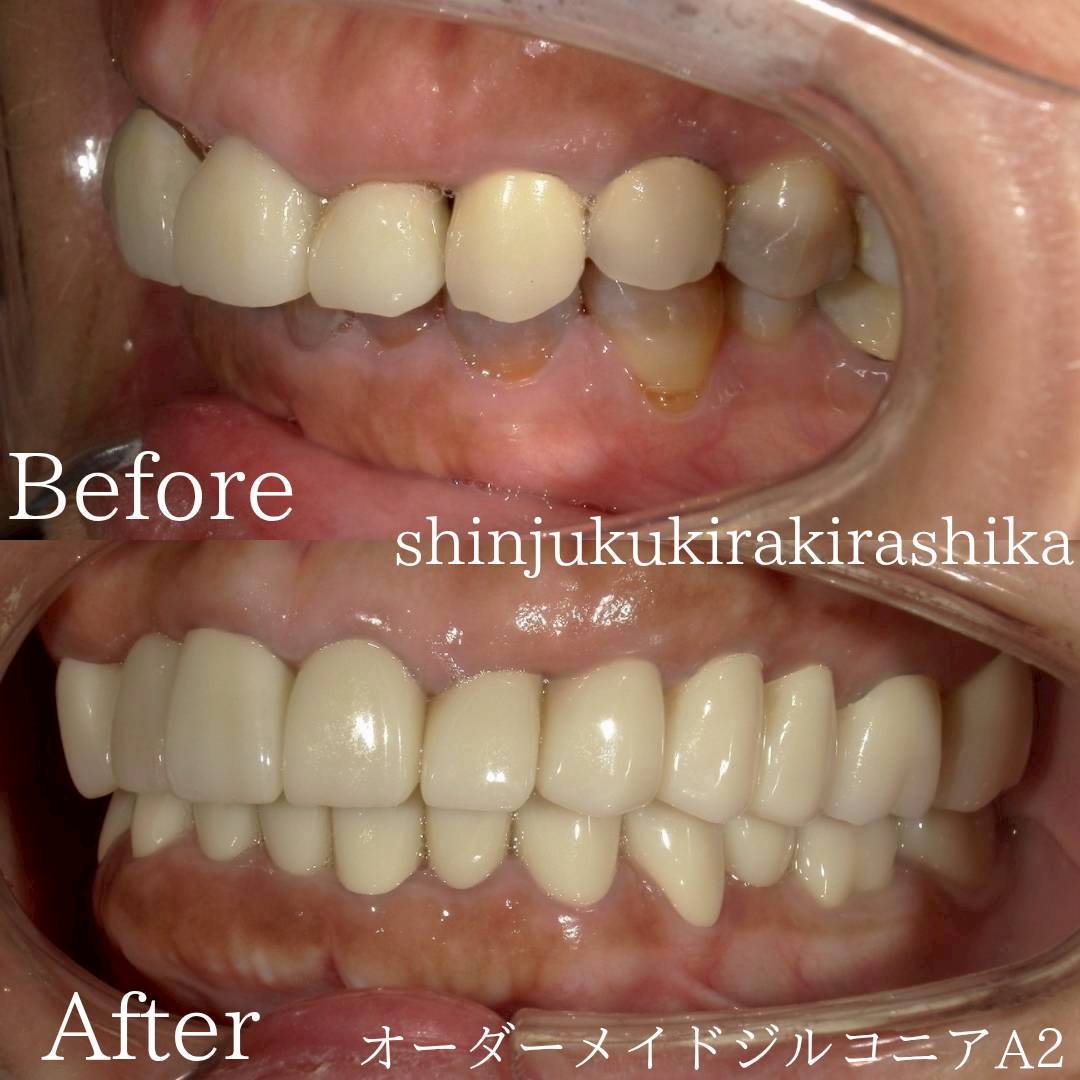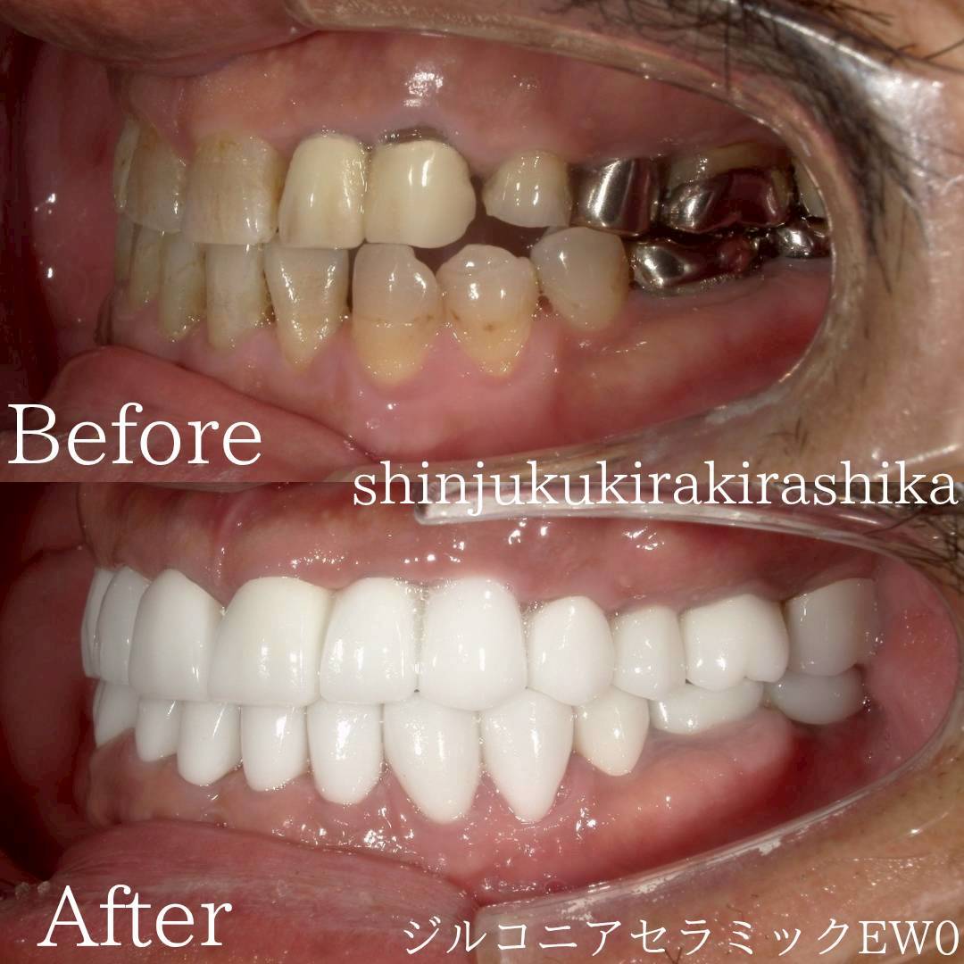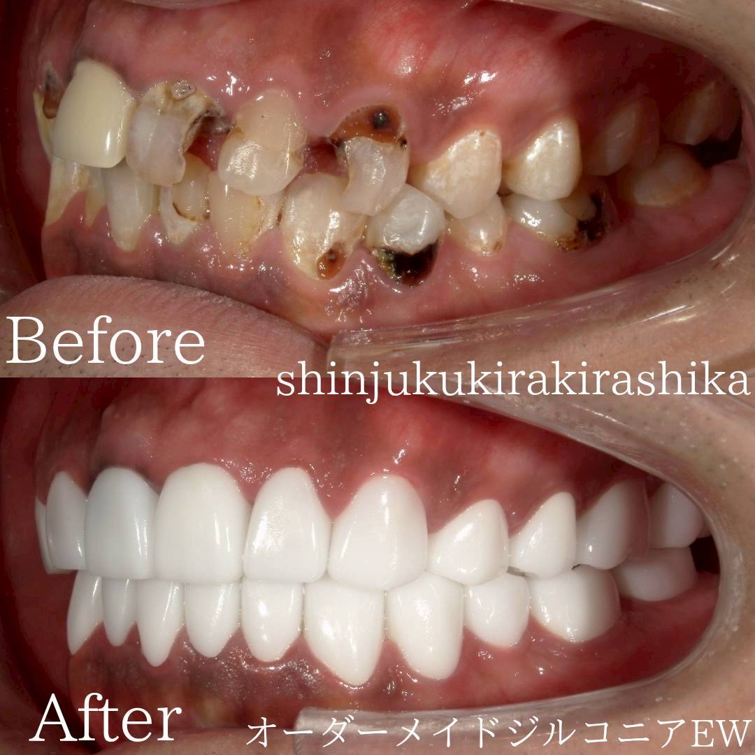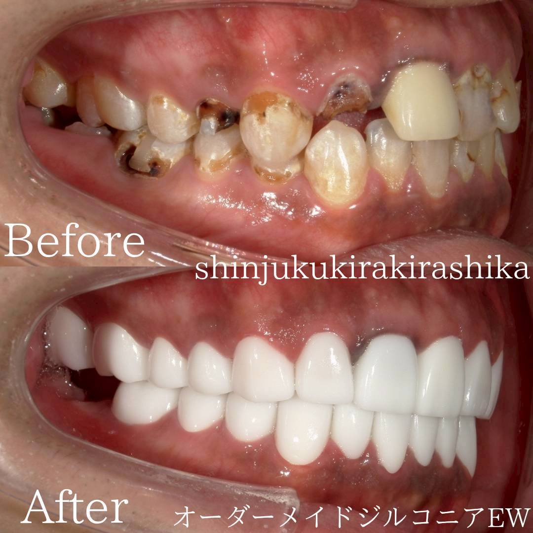 主訴 虫歯で歯がボロボロ、全部の歯を綺麗にしたい 施術名 セラミック治療 上部構造材質 オーダーメイドジルコニア 上部構造カラー EW 治療本数 27本 費用 2,230,000円(税込)