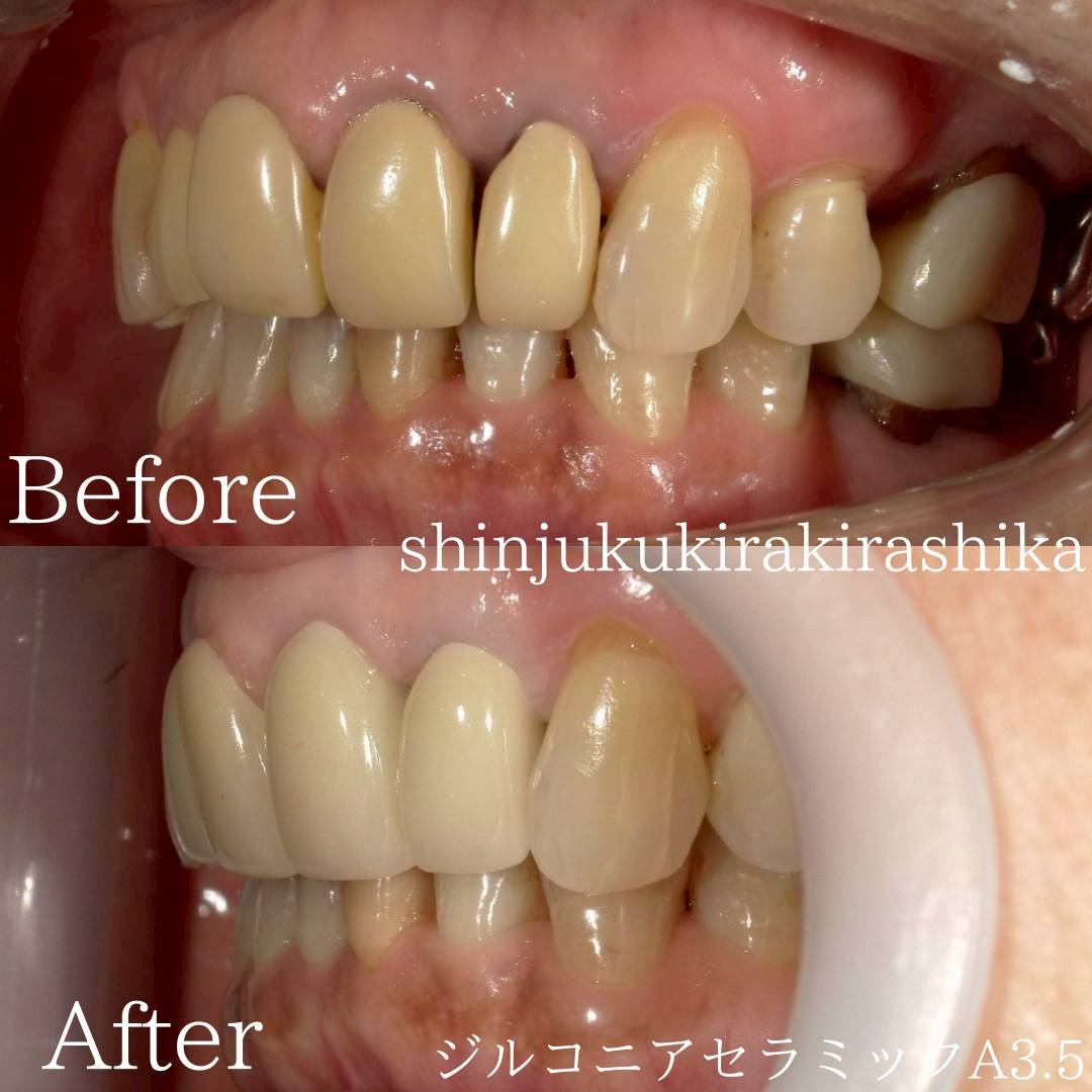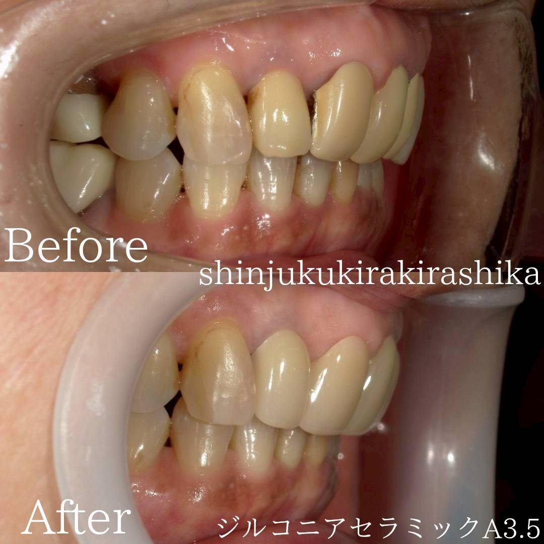 主訴 保険で治療した被せ物が劣化したのでやり変えたい 施術名 セラミック治療 上部構造材質 ジルコニアセラミック 上部構造カラー A3.5 治療本数 4本 費用 344,000円(税込)